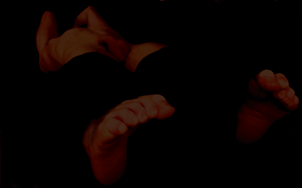 gasp his breaths quietly as his heartbeat slammed in & out of fast sync with