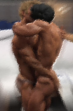 rolled him toward me - chest to chest, balls to balls & his raging erection met