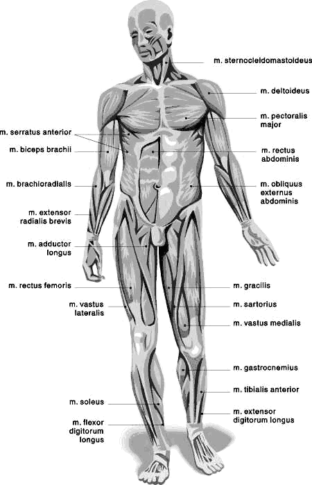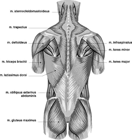 trapezius, deltoids, pectorals, rectus femoris, gastronemius & latissimus dorsi.