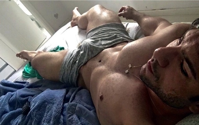 As the sun came up, the increasing light in the room just made Dan seem all the more handsome. I reached over & gently took his large, flaccid uncircumcised cock in my right hand & began to slowly stroke it so that his foreskin slid along the shaft. Dan's mouth opened some & he groaned softly. As I kept up the rhythm, his dick began to inflate quite quickly going to a massive size that must have been 10". Climbing back on top of him, I pulled the covers over us. As I slowly slid my erection along the length of his, he began to talk in his sleep & moan softly. Over the next few minutes, all those wonderful twitches & throbs shot along our mating shafts & Dan's breathing was really picking us as his muscular, sleeping body flexed & twitched under mine. Finally, Dan stirred just enough to put his arms around me as his cock began to spasm -- quickly causing its contents to gush in a series of moan generating emotion-filled spurts. Like before, the feeling was so erotic that I shot in time with him. Over the next 15 seconds or so, we slid into the afterglow & Dan eventually slid back off into sleep. I just laid there -- listening to his strong heart beat & feeling his skin under mine. He was so soft & vulnerable while at the same time, muscular & rugged. What was there not to love about the guy! I fell asleep. A few hours later, Dan moving around beneath me woke me up. I groggily rolled off him as he got up -- still hungover. He left the room and a few seconds later I could hear the bathroom door close & water hitting the bowl as he took a long piss. The toilet flushed & then I could hear the sink run as he washed his hands (good boy). Thinking ahead, I snatched his boxer briefs off the floor & put them under the covers, turned the Venetian blinds to closed - substantially darkening the room; & then I laid there with my eyes closed. Dan came back into the room & stopped as if looking around for something. He sat on the bed & asked if I'd seen his boxers. I reached over & began to scratch his wide back & told him they must be around close by. As I kept scratching, he began to relax & slouch forward some supporting his weight on his elbows resting them on his knees - & he turned toward me some. The change in his posture let me reach more of his neck & hairline. After a minute or so of scratching his scalp, I reached around him & pulled him back under the blankets & with a little effort - was wrapped around him (this time he was face down on top of me as I massaged him into a near coma). The only part of him that didn't seem to relax was his dick which gradually inflated to full mast & began to hard-throb as I rubbed & cuddled with the guy. Eventually he let out a deep groan that stiffened his whole body as his orgasm let loose shooting another volley of warm jism that mixed with my own. I just kept massaging him & over the next few minutes he fell back asleep on top of me. He must have really been wasted from the previous night. I let him sleep for another hour as I gently explored his body with my hands. Eventually, I rolled him back off me & I went down the hallway to take a pissssssssss. Upon coming back & climbing into bed with him, Dan commented that he was soooooo drunk last night he couldn't remember "hardly anything". I told him that was too bad because I really enjoyed our time together. I added by saying that our close friendship & the details were only our business & the close bond we had was nothing I was going to casually discuss with anyone -- & I hoped that he understood. He said that he did & that he didn't know why he was "so close" to me other than the fact I was a "great guy". We ended up snuggling up together again & slept until well into the afternoon (Dan because he was hungover; -- & me -- because I really loved the intimacy with a stud muffin like Dan). I woke up later with the feel of two large hands lightly stroking all over my body. As I opened my eyes, I met Dan's gaze & his light smile as he began to stroke my face with the back of his right hand. I closed my eyes & smiled as his touch moved out from my face to my chest, abs & then down onto the insides of my thighs -- slowly around my balls just staying out of contact with my privates. My dick began to inflate as one hand continued to linger at my pelvis and the other moved lower onto my legs to my calves & my feet. Once he hit my feet I thought I was in heaven. The sensation of a pair of strong hands making all the right moves down there was like a drug. I just groaned. Dan took the cue & concentrated his efforts there for a while & totally plastered me. Then gradually, he begin to move back up the length of my body -- again, just staying out of touch of my inflated dick. When his hands reached my shoulders, I couldn't take the temptation any more. I grabbed a wrist in each hand & pulled his arms apart which lowered his chest onto mine. I then slid my right hand down to his butt & lifted him onto me & then I wrapped my legs around his. His hard-on pushed firmly into my own as I reached both of my arms around his upper body & hugged him tightly while caressing his upper & lower back. We moved our hips just enough to slide our swollen dick heads slowly back & forth as the throbbings & spasmings in our shafts & balls got ready to launch our pent up payloads. We were both groaning pretty loudly partially because it felt so good and partially to reinforce what the other guy was feeling about what he was doing. Dan's face was pushed up beside mine and our teen shadows were locking together causing of facial skin to slide in short movements as we moved our faces against each other. Finally Dan arched his back and I felt his ass tighten under my hands as his groaning turned into a gasp & then a whimper & with his mouth open, red-faced with big swollen neck veins. His dick beside mine felt like a hot metal pole as it began to pulse -- shooting his load a good foot or two through all the air gaps between our tummies his arc