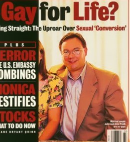 | A prominent ex-gay leader once featured as "going straight" on the cover of Newsweek magazine was confronted and photographed by activists Tuesday night patronizing a gay bar in Washington, D.C | |