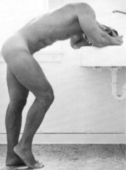 Will was in the raw, - hunched over the sink cupping handfuls of cold water &