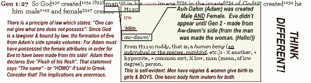 genders are really the SAME (HOMO) FLESH (SARKOS), then saying that