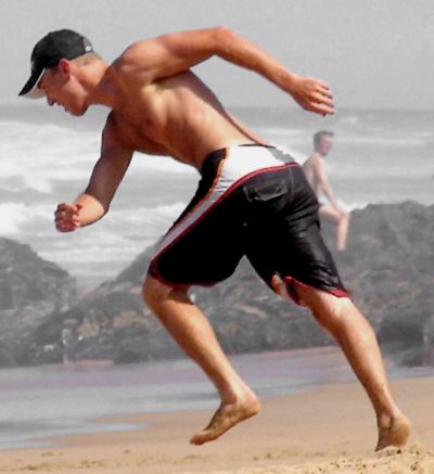 Soon it was "legs" day at the school. The long-term plan was to hyper-exhaust his bad side & force it to grow. We were both sore from the arse-down the next day ... & by Tuesday, I could barely walk, & Joey had a brace-wrap on his bum side. We hooked up though - & considering the circumstances, I decided to use the heated whirlpool to help our lower limbs recoup. We got naked & sat in the frothy tub & as the jets bombarded our legs with pressurized water, I suggested that we push foot against foot & force some circulation through. Joey's strong side kept good pace -- but his weak side really made him wince as he moved it. "Scar tissue" was his explanation. We've all experienced a twitch from time to time -- but Joey's bum leg twitched whenever it got sore; -- Big twitches - all over involving numerous muscle groups. I noticed it as our feet were pressed together. He said they were painful because a twitch - like a reflex does not originate from the brain -- but from the spinal cord. His twitches often became cramps. Chronic cramps are bad because they exhaust the muscle of oxygen & injure it. Even after getting out of the tub, he had to stretch his leg for a while before standing up. He sat on the floor & slowly pushed it straight & forced the spasms to loosen their hold.