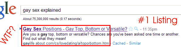 Meanwhile, the vast majority of MILLIONS imply that "GAY" actually